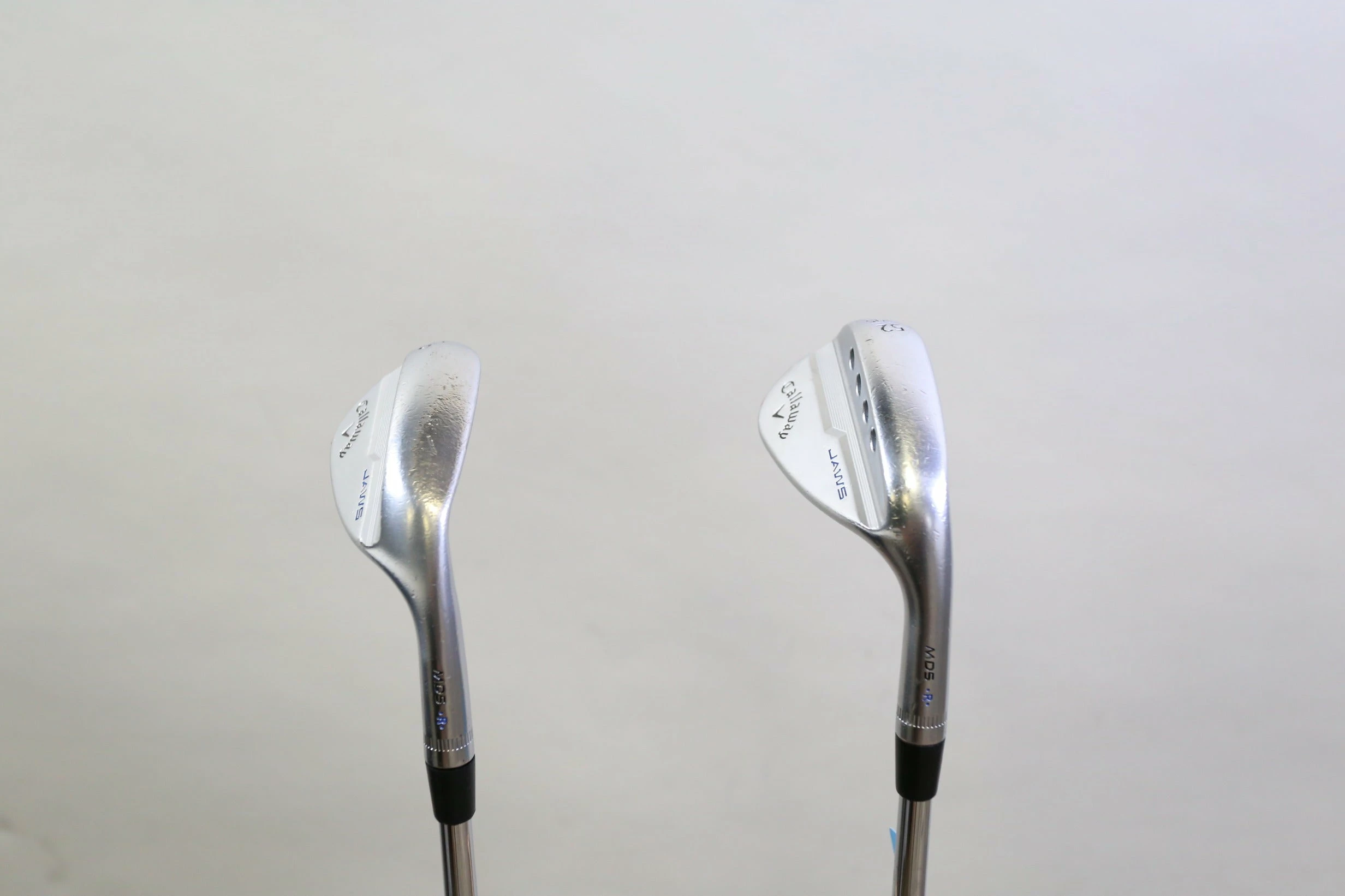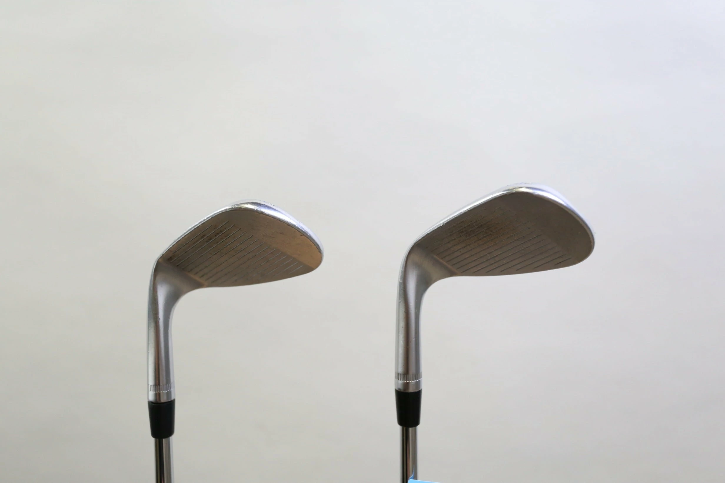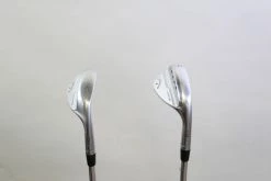 GOOD – This wedge set is in good condition. There is average wear around the heads and on the faces of the clubs from regular use. There are very small markings and scratches along the shafts from normal use and storage. The grips are in good condition with some wear from regular use and storage. 52* – 35.5 inches, 56* – 35.25 inches. Please see pictures for more details.
