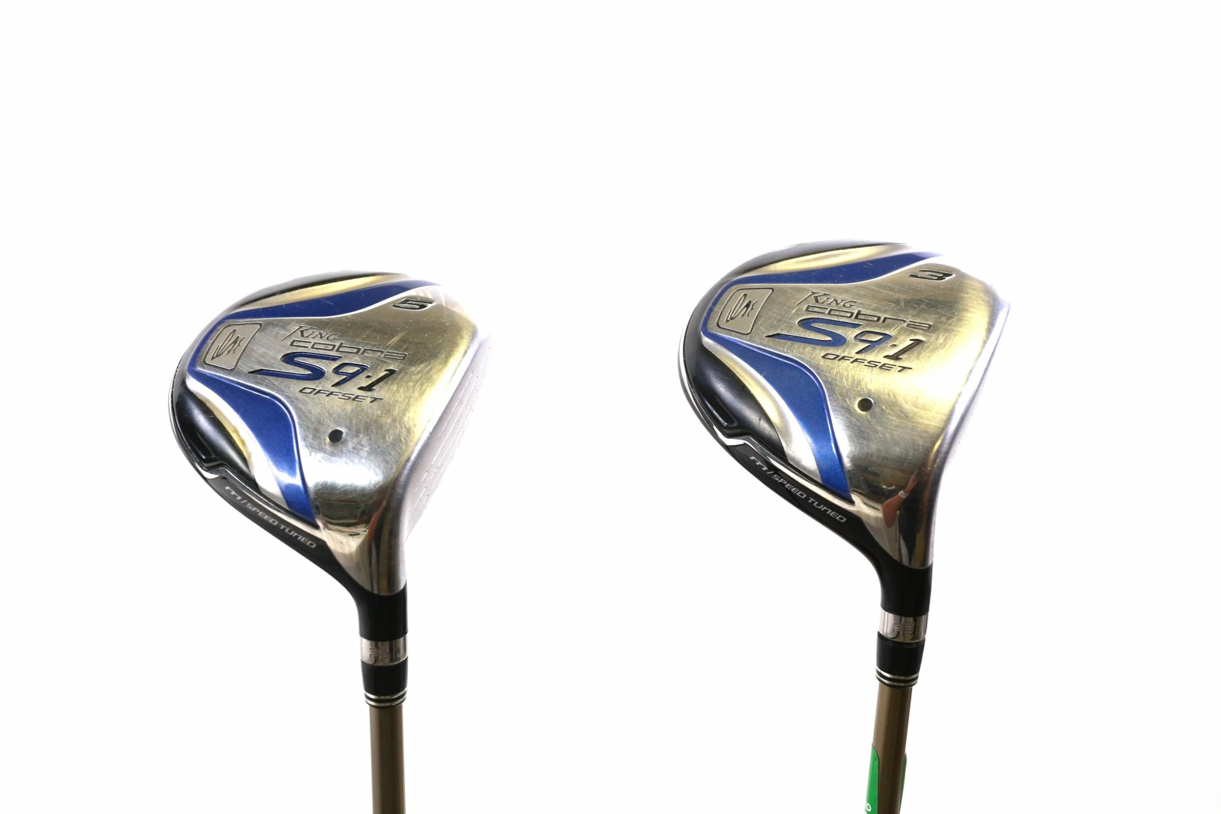 VERY GOOD/GOOD- 8 – This wood set is in good condition. There is minor wear around the heads and on the faces of each club from play and storage. There are very small markings and scratches going along each shaft from regular handling and storage. The grips are in good condition with light wear from normal handling. Please refer to the pictures provided for more details.