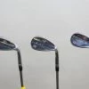 GOOD – This wedge set is in good condition. There is average wear around the heads and on the faces of the clubs from regular use. There are very small markings and scratches along the shafts from normal use and storage. The grips are in good condition with some wear from regular use and storage. Please see pictures for more details.