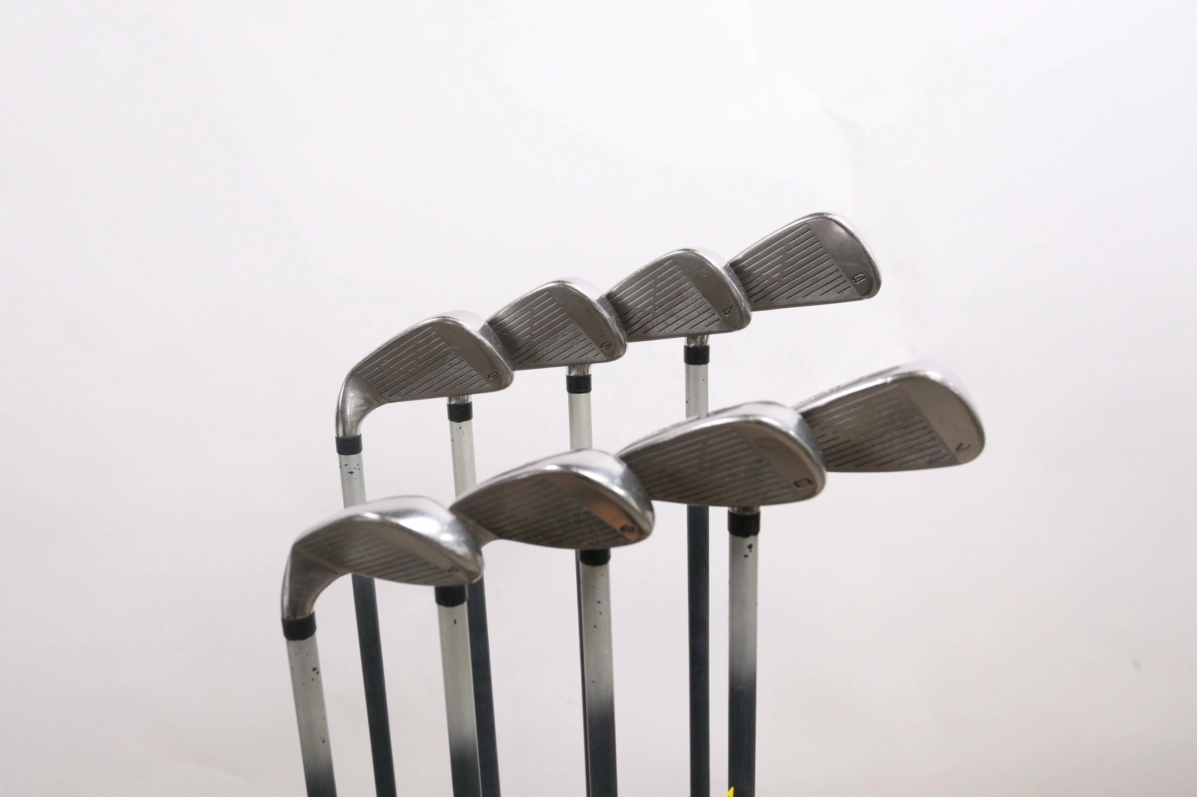 GOOD – This iron set is in good condition. There is average wear around the heads and on the faces of the clubs from regular use. There are very small markings and scratches along the shafts from normal use and storage. The grips are in good condition with some wear from regular use and storage. Please see pictures for more details.